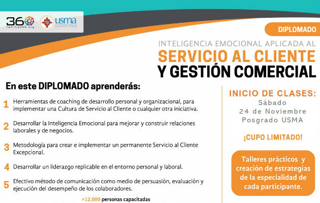 Un grupo de profesionales apasionados por el aprendizaje, en alianza con la Universidad Católica Santa María la Antigua (USMA), ofrecen a los estudiantes un diplomado de Inteligencia Emocional Aplicada al Servicio al Cliente y Gestión Comercial.