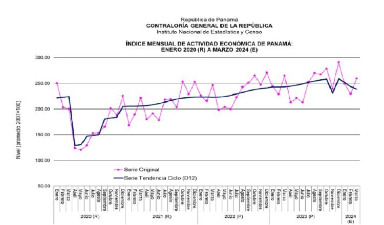 El Índice Mensual de Actividad Económica de Panamá (Imae) de marzo reflejó una disminución de -2.08%, primer mes en número rojo desde noviembre de 2023, cuando cayó -2.94%, debido a las protestas contra el contrato minero.
