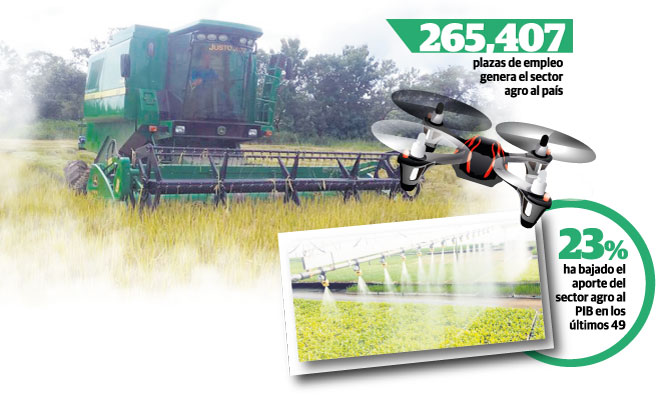 Hasta agosto de 2018, el sector agro había generado unas 265, 407 plazas de empleo con un aporte de 1.9% al PIB, cuando en 1970 era del 25%.