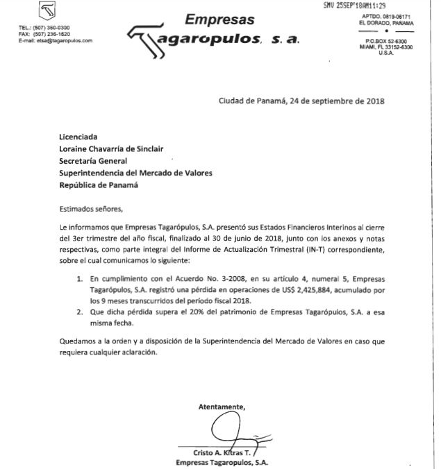Empresas Tagarópulos perdió en nueve meses $2.4 millones