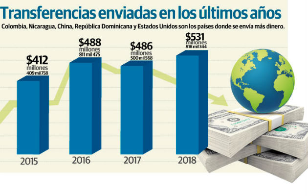 En el 2018, el envío de remesas desde Panamá sumó más de 531 millones, una tercera parte de los aportes del Canal de Panamá, que en promedio representan $1,600 millones que entran al Tesoro.