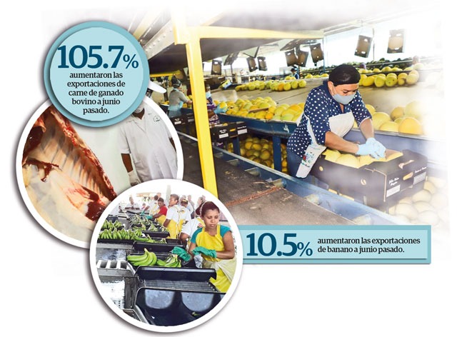 Un 10.5% aumentó la exportación de banano hasta junio en comparación a igual periodo del año anterior, así como la exportación de pescado y filete de pescado con un alza de 17.2%, la harina y aceite de pescado un 11.6%, carne de ganado bovino 105.7% y azúcar sin refinar 34.4%.