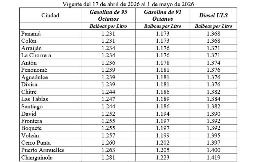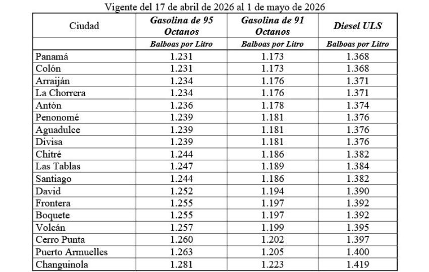 La Secretaría Nacional de Energía anunció los nuevos precios del combustible que regirán a partir del viernes 17 de abril al 1 de mayo de 2026, con leves variaciones en la gasolina y el diésel.