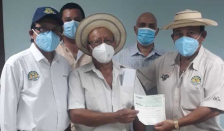La entrega de los cheques estuvo a cargo del presidente de la Asociación Nacional de Ganaderos (Anagan), Gerardo González, y de los directivos de la asociación en Los Santos Edwin Valdés y José María Zambrano, en compañía de Ballesteros.