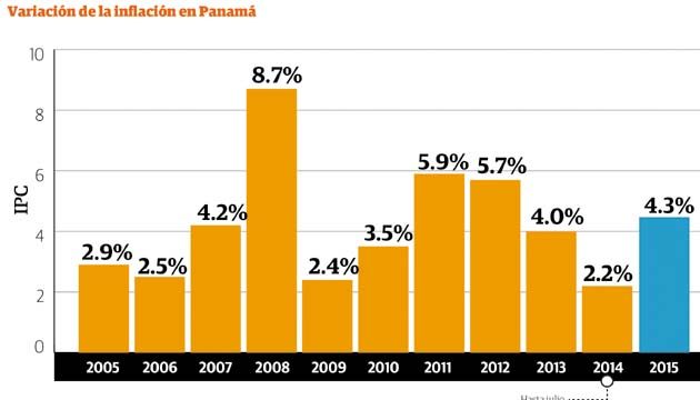 Sin embargo, la actual administración, que asegura que la inflación continúa disminuyendo en Panamá, al ubicarse en 2.2% al cierre de julio de 2014, según el Índice de Precios al Consumidor (IPC) del Instituto Nacional de Estadística y Censo (Inec), podría cumplir su primer año de mandato con una de las alzas inflacionarias más grandes desde 2008, cuando se pasó de 4.2% a 8.7%.