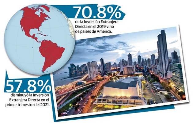 A marzo del 2021 Panamá alcanzó un saldo neto de $453.6 millones en la Inversión Extranjera Directa, presentando una disminución absoluta de $622.3 millones. Es decir, una reducción de 57.8% respecto al 2020, influenciado por las actividades del sector de otras empresas, siendo el comercio al por mayor y menor la actividad económica más afectada, debido a la crisis económica como resultado de la pandemia.