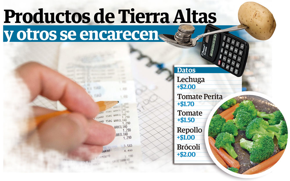 Productos como la lechuga, el tomate, tomate perita, repollo y brócoli están por encima de un $1.00 y los $2.00; mientras, que el saco de cebolla supera los $8.00 dólares; $4.00 dólares el saco de papa, los melones pasaron de $1.75 a $3.50 la unidad, en tanto, el saco de naranja alcanzó los $20.00 dólares.