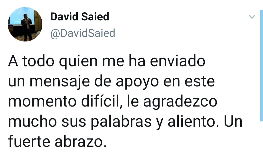 "Me siento mejor", fue lo último que escribió en su cuenta de Twitter David Saied actual director de la Unidad de Análisis Financiera (UAF), quien en los últimos días lucha contra la enfermedad.