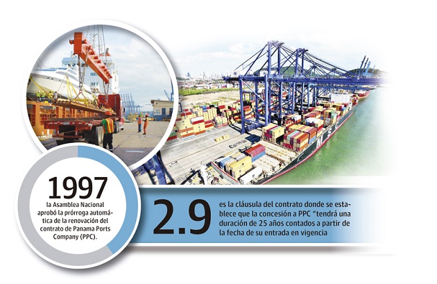 También PPC, filial de la honkonesa Hutchison Ports, es el único cuya cláusula de renovación es automática. Los contratos de Manzanillo Internacional Terminal de la estadunidense Stevedoring Services of America (SSA) y Colon Container Terminal de la taiwanesa Evergreen, fueron renovados mediante ley aprobada por la Asamblea Nacional durante el gobierno pasado. Igual proceso le espera, cuando venza su contrato, a Panama Internacional Terminal (PSA) de Singapur.