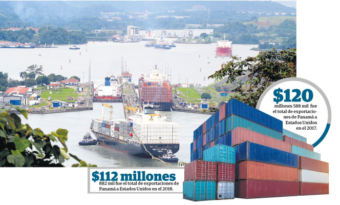 Panamá exportó en el 2018 a Estados Unidos $112 millones 882 mil 84, mientras que importó de ese país $3 mil 281 millones, 119 mil 972.
