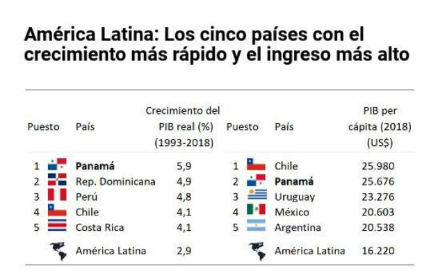 Panamá se encuentra en el primer lugar entre los cinco países en América Latina con el crecimiento más rápido y el ingreso más alto, según dio a conocer el Fondo Monetario Internacional (FMI).