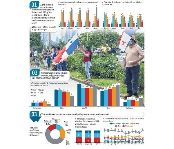 A nivel de país, las perspectivas no son halagadoras. 66% de la población consultada plantea que la situación económica de Panamá es peor a la del año pasado, con todo y que en 2022 no ha habido medidas restrictivas, como consecuencia de la pandemia.