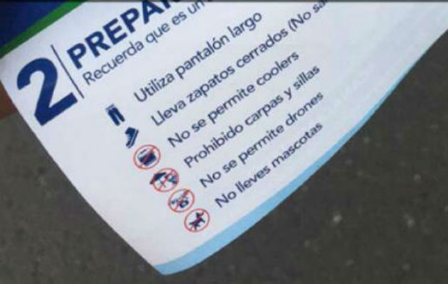 No se permitirá la entrada de carpas, por lo que, ante las probabilidades de lluvias, se recomienda la utilización de capotes que incluso serán proporcionado por la ACP y en caso de sol exhorta la utilización de bloqueador solar.