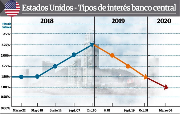 Durante el 2018, la Fed reportó tres aumentos de la tasa de interés, que se ubicaba en marzo de ese mismo año en 1.50%, para finalizar en diciembre con 2.25%.