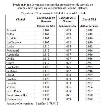 Los nuevos precios estarán vigentes del 22 de marzo de 6:00 a.m. hasta el 5 de abril 5:59 a.m.