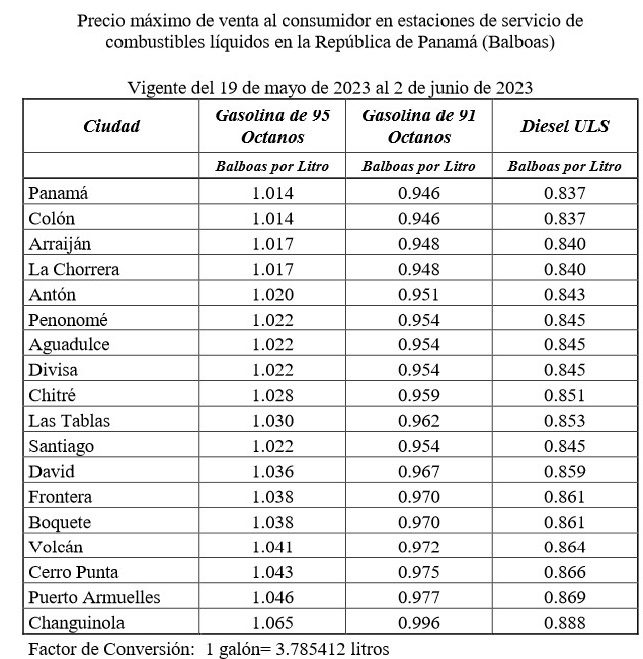 En las provincias de Panamá y Colón, la gasolina de 95 octanos bajará cinco centavos, por lo que se venderá en $1.014 por litro.