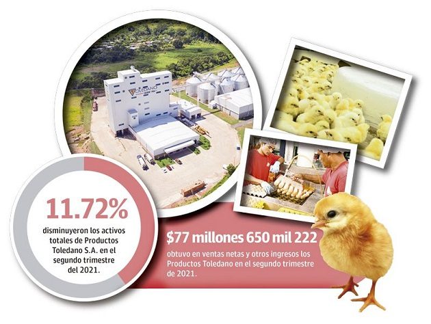 Los activos totales de Productos Toledano S.A. en el segundo trimestre del 2021 disminuyeron, en términos relativos, con relación al segundo trimestre del año pasado en 11.72%.'