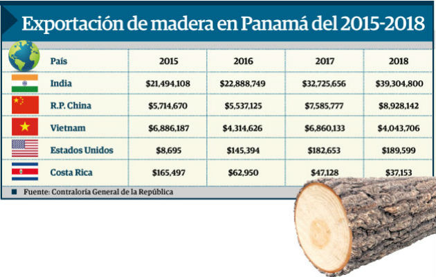 Cifras de la Contraloría General de la República detallan que del 2015 al 2018, las exportaciones de madera panameña aumentaron significativamente un 52%, es decir $18 millones 138 mil 529 más.