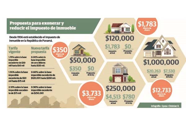 El proyecto establece que se amplía el rango exonerado de viviendas de $30 mil a $120 mil del valor catastral a partir del año 2019, es decir, que la vivienda principal de una familia hasta ese rango no pagará impuesto de inmueble.