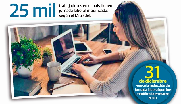 A la fecha el Mitradel tiene registrado a 25 mil trabajadores con jornada laboral modificada, tras la crisis de la pandemia.