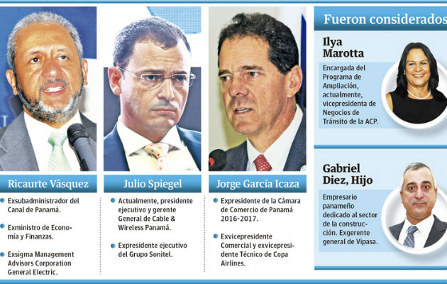 También están en la competencia Julio Spiegel, actual presidente ejecutivo y gerente general de Cable & Wireless Panamá; Jorge García, expresidente de la Cámara de Comercio y también exvicepresidente Comercial y exvicepresidente Técnico de Copa Airlines por 15 años. Además fueron considerados Ilya Marotta, actual vicepresidenta de Negocios de Tránsito de la Autoridad del Canal, y Gabriel Diez hijo, reconocido empresario del sector construcción, entre otros.