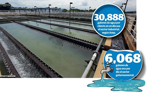 Para tener una idea de cuántos galones consume una persona por día, en el área residencial se consumen un total de 102 galones diarios por persona, en el área comercial 1,328 galones por cliente, le sigue el Gobierno con 6,068 y el sector industrial con unos 30 mil 888, de acuerdo con las últimas cifras de la Autoridad Nacional de los Servicios Públicos de Panamá (Asep).