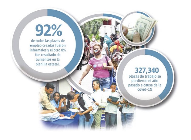"El panorama laboral a corto y mediano plazo se mantendrá incierto. Recientemente, la Ministra de Trabajo, Doris Zapata, pronosticó que para el 2021 el Mitradel estará procesando unos 200 mil nuevos contratos laborales, 68 mil más que los 132 mil tramitados en el 2020, cuando se perdieron 289 mil empleos, y prácticamente la mitad de los 378 mil contratos tramitados en el 2019, año en el que se generaron 52,040 nuevos empleos, todos informales", acotó.