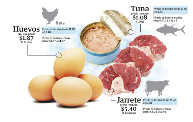 Al 5 de diciembre pasado, la tuna llegó a costar $1.85, es decir, $0.77 más, por su parte, el jarrete que tenía costo regulado de $5.40 el kilogramo, llegó a costar $6.50; el pecho pasó de $1.98 a 2.31, el poroto rojo de $2.12 el kilogramo a $3.31 y la docena de huevos, cuyo precio regulado era de $1.87, llegó a costar $2.40.