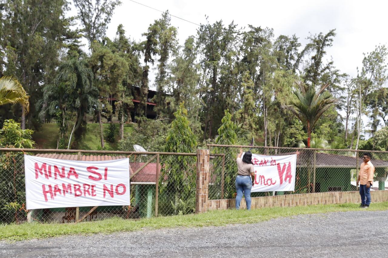 En la comunidad de Villa del Carmen, en la casa de la señora Bellameira Mora Hernández (cuya construcción quedó detenida) hay dos: una con el mensaje de "Abran la mina ya" y la otra con "No queremos ambientalistas, nos quitaron el trabajo", las cuales colocó sin miedo, porque precisamente no pudo terminar su casa al quedarse sin empleo.