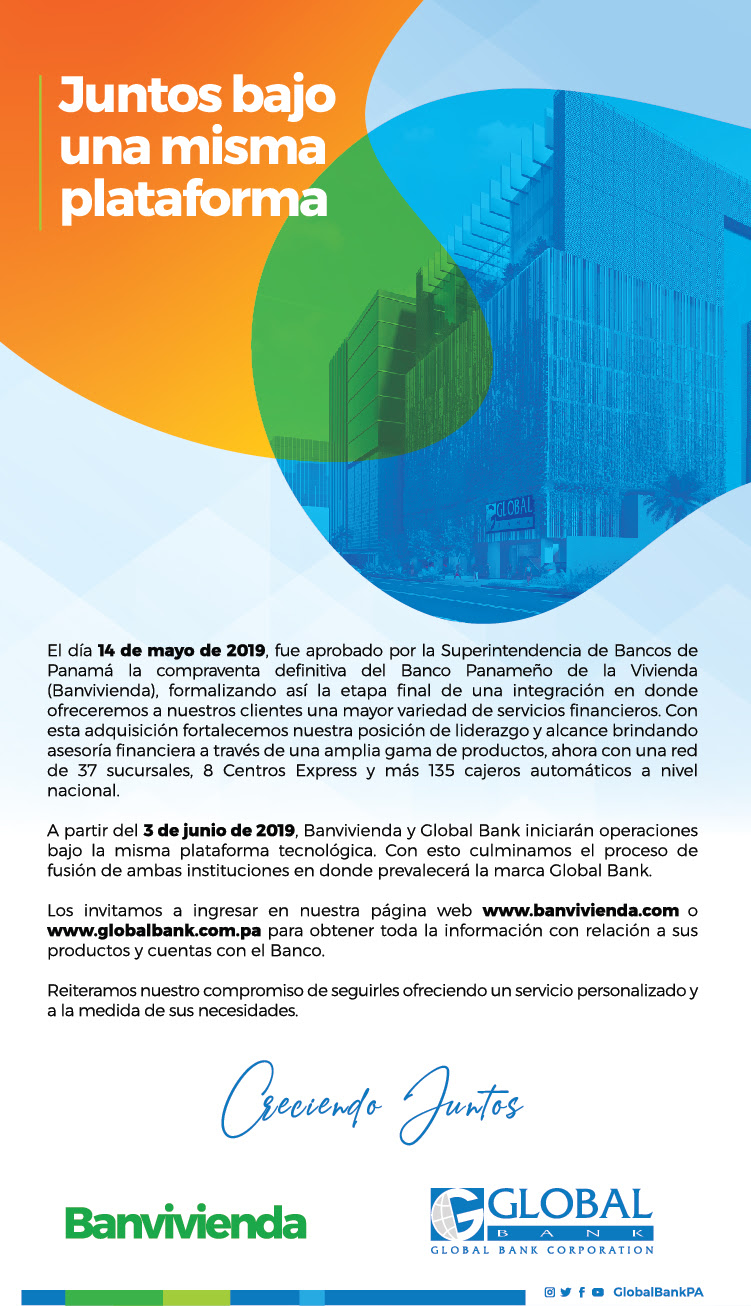 Global Bank adquirió el 99.972% de las acciones de Banvivienda a través de su controladora G.B. Group y Grupo Grupo Mundial por un precio estimado de 245 millones de dólares.
