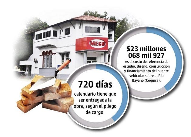 La Dirección General de Contrataciones Públicas admitió ayer una acción de reclamo contra el Informe de la Comisión Evaluadora del Acto Público No. 2021-0-09-0-08-LV-007739, convocado por el Ministerio de Obras Públicas (MOP) bajo la descripción "Estudio, diseño, construcción y financiamiento del puente vehicular sobre el Río Bayano (Coquira)", con un precio de referencia de $23 millones 068 mil 927. El puntaje favorecía a la empresa tica Meco, la misma que está envuelta en un escándalo de corrupción en su país sede.