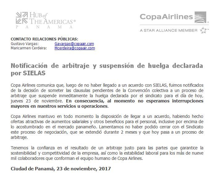 Trabajadores de Copa Airlines se mantienen en huelga por ajuste salarial