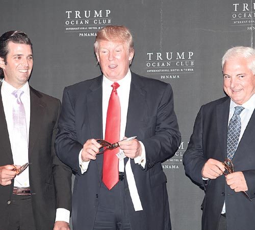 Junto a Trump llegó toda su comitiva, entre ellos, sus hijos, y en primera fila, el presidente de la República, Ricardo Martinelli.