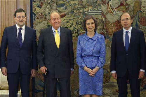 Con un almuerzo en el Palacio de la Zarzuela, los Reyes recibieron a los máximos representantes de los poderes Ejecutivo, Legislativo y Judicial, entre ellos el presidente del Gobierno, Mariano Rajoy, el presidente del Senado, Pío García-Escudero y el presidente del Tribunal Supremo y del Consejo General del Poder Judicial, Carlos Lesmes.