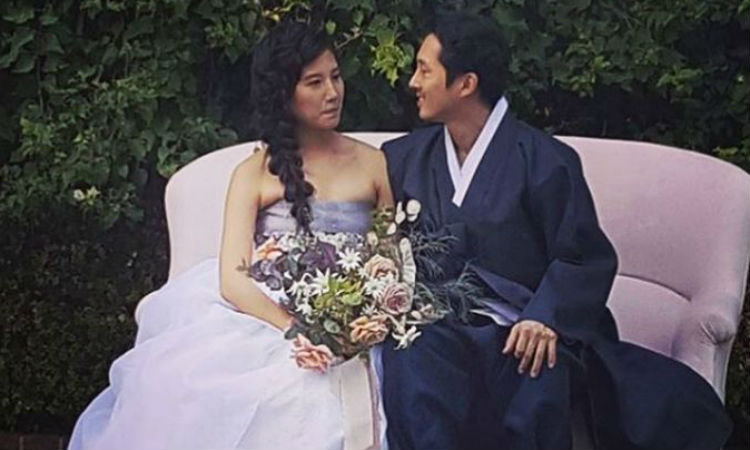 El actor Steven Yeun, más conocido como Gleen en The Walking Dead, se casó con su novia, la fotógrafa Joana Pak. La ceremonia se realizó el sábado en Los Ángeles, Estados Unidos. Algunas imágenes de la pareja se filtraron en Instagram.