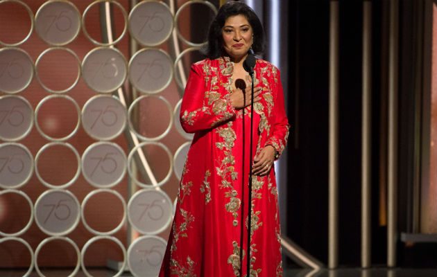 Por otra parte, Meher Tatna, presidenta de la Asociación de la Prensa Extranjera de Hollywood, eligió llevar un vestido rojo con bordados y un saco largo haciendo juego para la ceremonia de premiación. Asimismo, lució un pin para apoyar la iniciativa Time's Up.