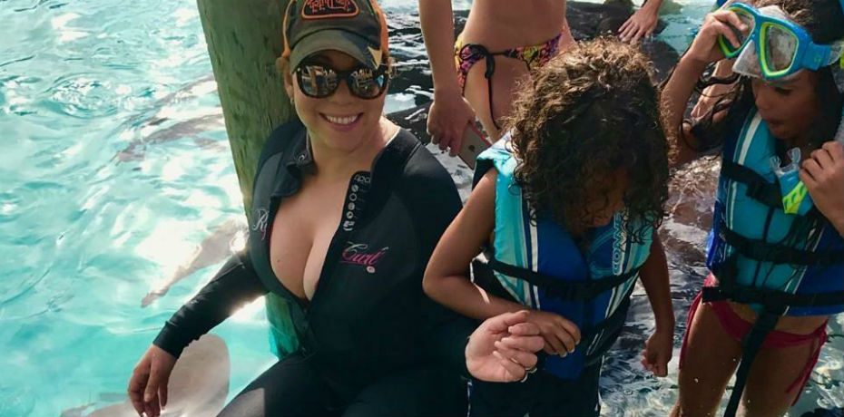 Mariah fue criticada por llevar a sus mellizos Motoccan y Monroe a nadar con tiburones "mansos", que se llevo a cabo en un resort de las islas Bahamas, donde Carey se sumergió en una piscina junto a sus hijos, a los que pudieron incluso tocar.