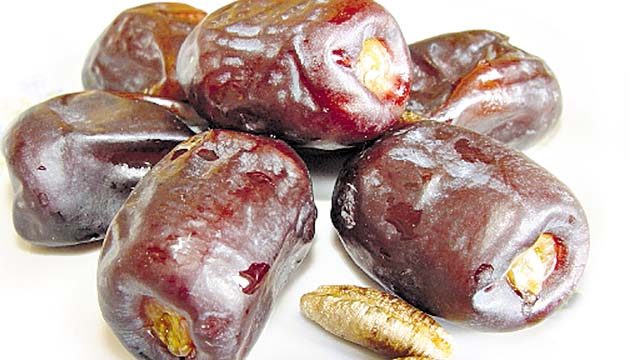 - El dátil es una fruta obtenida de la palmera datilera, considerada un edulcorante por su cantidad de azúcar (70%). Los mayores productores de este fruto son Irán e Irak, California e Israel. Existen multitud de variedades las más apreciadas son el Deglet Nour, Selkya y Medjoul. Es muy considerada en la medicina natural, sobre todo en caso de bronquitis, asma, tuberculosis, tos, fiebres, cáncer, catarro, molestias estomacales. Esta fruta hervida en agua o leche y con unas cucharadas de miel suaviza las vías respiratorias.