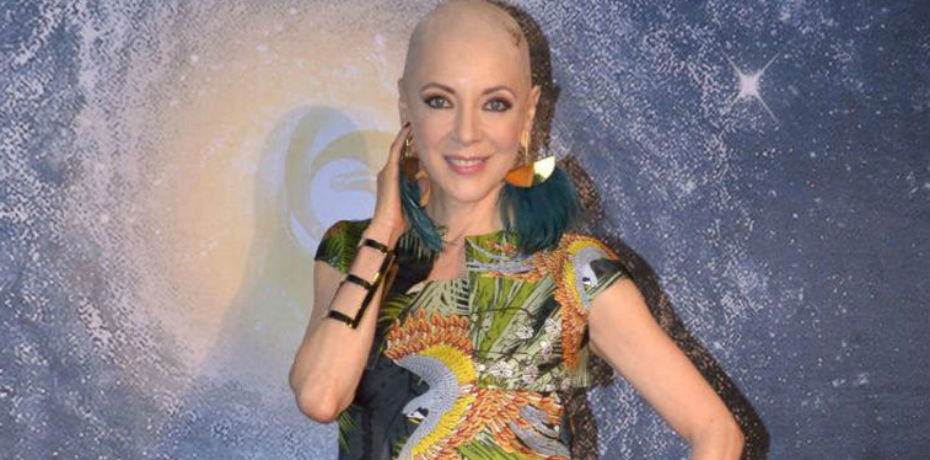 La actriz Edith González Fuentes, de 52 años de edad,decidió presentarse en la alfombra roja de los Premios Luminus en la ciudad de México, pero sin peluca, totalmente rapada.