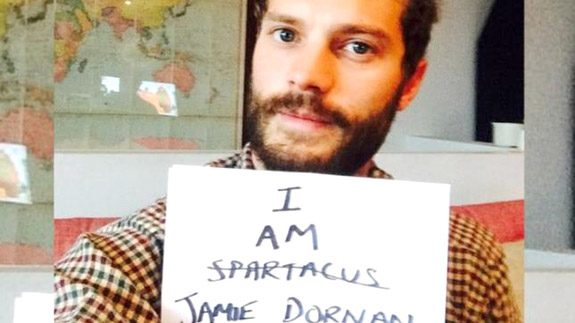 El Christian Grey de '50 sombras de Grey' ha incluido en su cuenta una fotografía. Es un selfie donde el actor sujeta una hoja de papel en la que puede leerse: "Soy Spartacus", con la palabra Spartacus tachada y sustituida por su nombre Jamie Dornan.