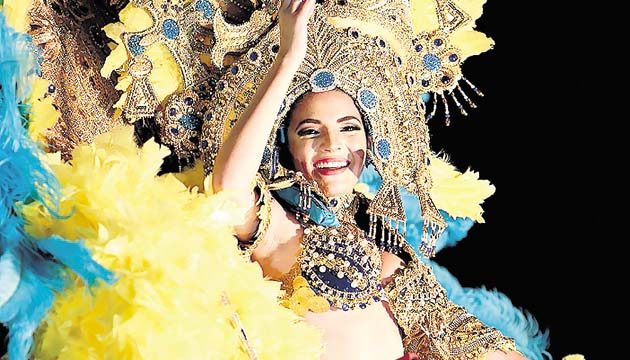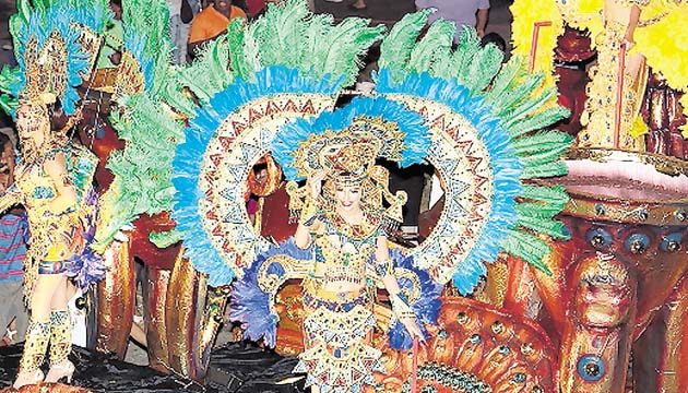La soberana del Carnaval de la capital, Onissis Samaniego, junto a sus princesas, lució hermosa en el desfile de carros alegóricos en la Cintan Costera.