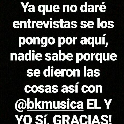 También informó que no daría entrevistas y que nadie sabe porqué se dieron las cosas así con BK, solamente ellos dos.