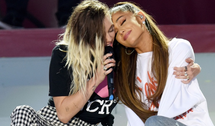 Ariana Grande y Miley Cyrus interpretaron un tema juntas. AP