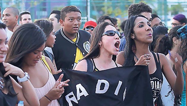 Desde horas de la tarde, decenas de amantes de este género musical llegaron a las instalaciones donde se encuentra la gran tarima para buscar el mejor lugar. Ataviados con atuendos llamativos y de color negro, esperaban su banda favorita.