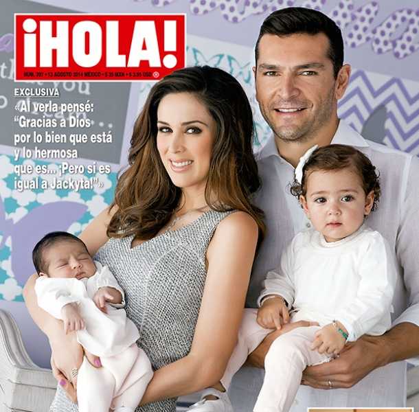 La también actriz, de 34 años, engalanó la portada de la revista ¡HOLA!, en la que aparece sosteniendo a la pequeña Carolina, mientras que su esposo Martín Fuentes carga tiernamente a Mini Jacky. "Mi hija nació perfecta, grande, con fuerza. Sé que mi padre, desde arriba, estuvo pendiente de todo y cuidó a Carolina hasta que la tuve en mis manos", declaró el piloto a la publicación.