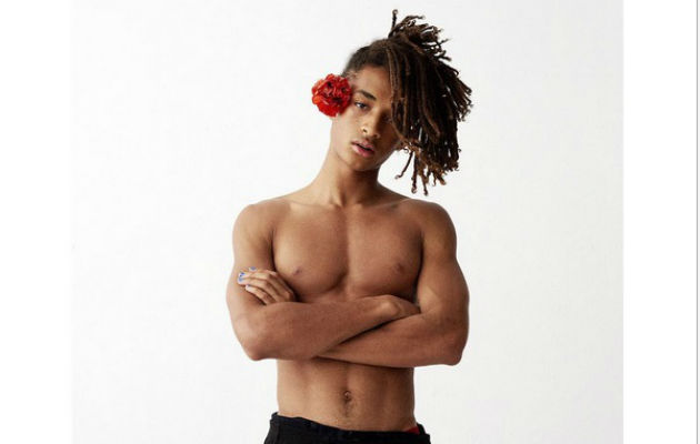 El hijo de Will Smith aparece con una falda negra, una flor en la cabeza y una pose no muy varonil, además de lucir uñas pintadas y brillo en los labios.