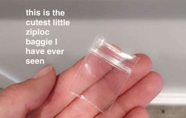 Se trata de una imagen donde aparece tomando una diminuta bolsa ziploc y la describe como "la más tierna y pequeña que ha visto".