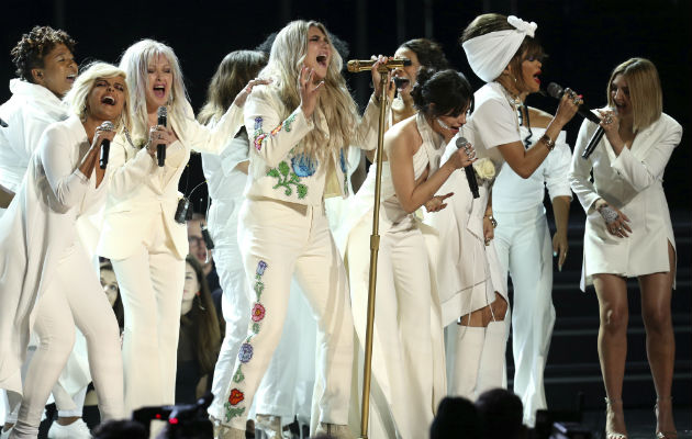La actuación de Kesha en los Grammy solo duró unos pocos minutos, pero fue como si toda la gala hubiese conducido hasta ella. Fue Janelle Monáe -con su correspondiente pin de Time’s up-, la que presentó a la artista con la frase “venimos en son de paz, pero venimos en serio”. Y entonces Kesha subió al escenario ataviada con una chaqueta blanca con bordados florales, acompañada de un grupo de mujeres entre los que se encontraban Cyndi Lauper, Camila Cabello, Julia Michaels, Andra Day y Bebe Rexha, todas también de blanco simbólico. VER TAMBIÉN Drástico cambio de la cantante Kesha La ocasión también era única, por muchas razones. Para empezar porque era la primera vez que Kesha actuaba fuera de su tour desde que se tomó un descanso en el año 2014.