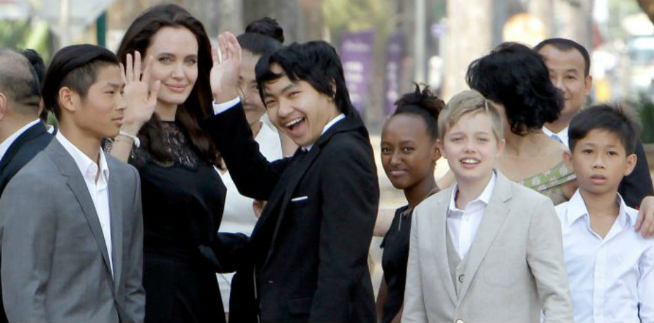 La actriz reaparece en público con sus hijos en el estreno de 'Primero mataron a mi padre' en Camboya y reconoce que a pesar de su divorcio ellos "son y serán siempre una familia"