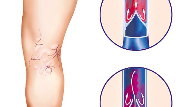 Las venas varicosas, unas de las más comunes, ocurren cuando las válvulas se lesionan o se dañan, esto ocasiona que la sangre se devuelva y se acumule en las venas, lo que produce la insuficiencia venosa, conocida como úlceras, que es la parte más grave de esta enfermedad.